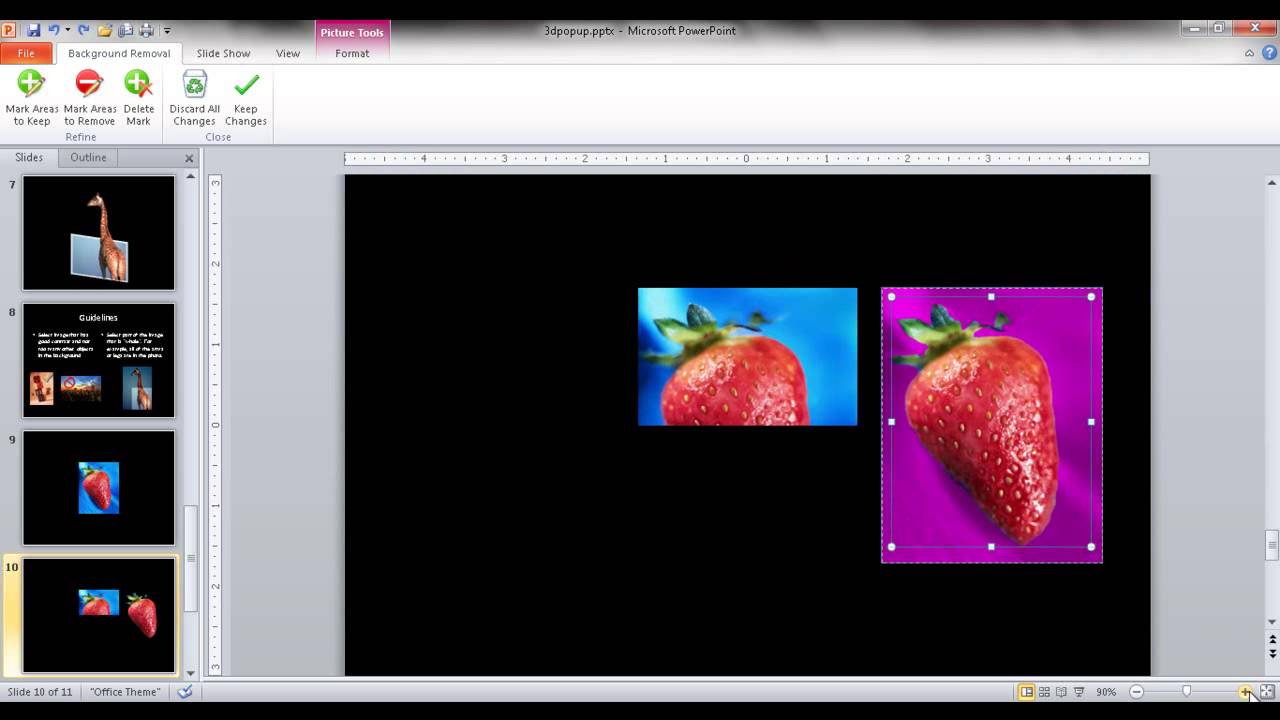 Kumpulan video ini berisi cara membuat efek 3D pop-out pada foto di PowerPoint. Cara ini juga bisa digunakan untuk aplikasi Office yang lain, seperti Microsoft Word.